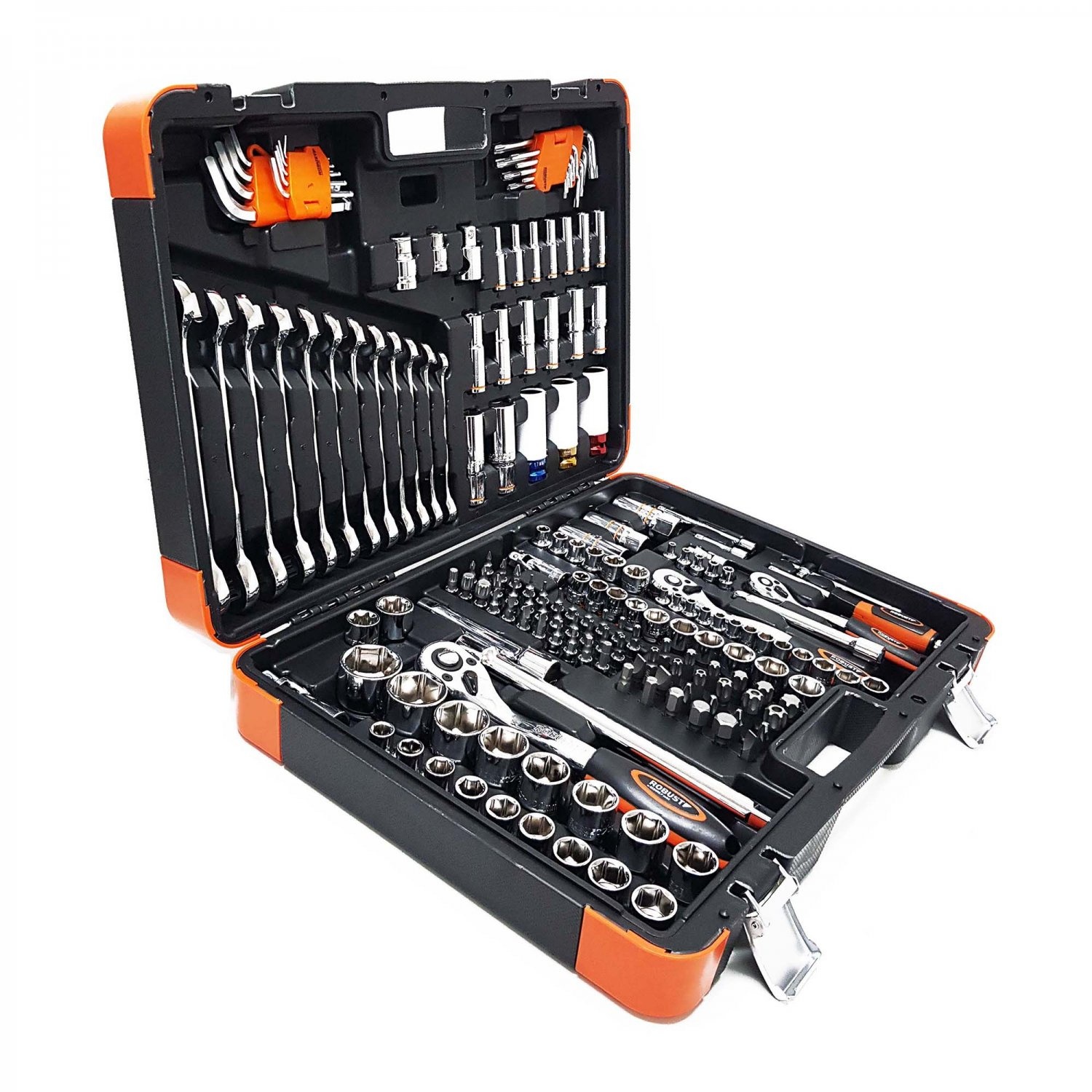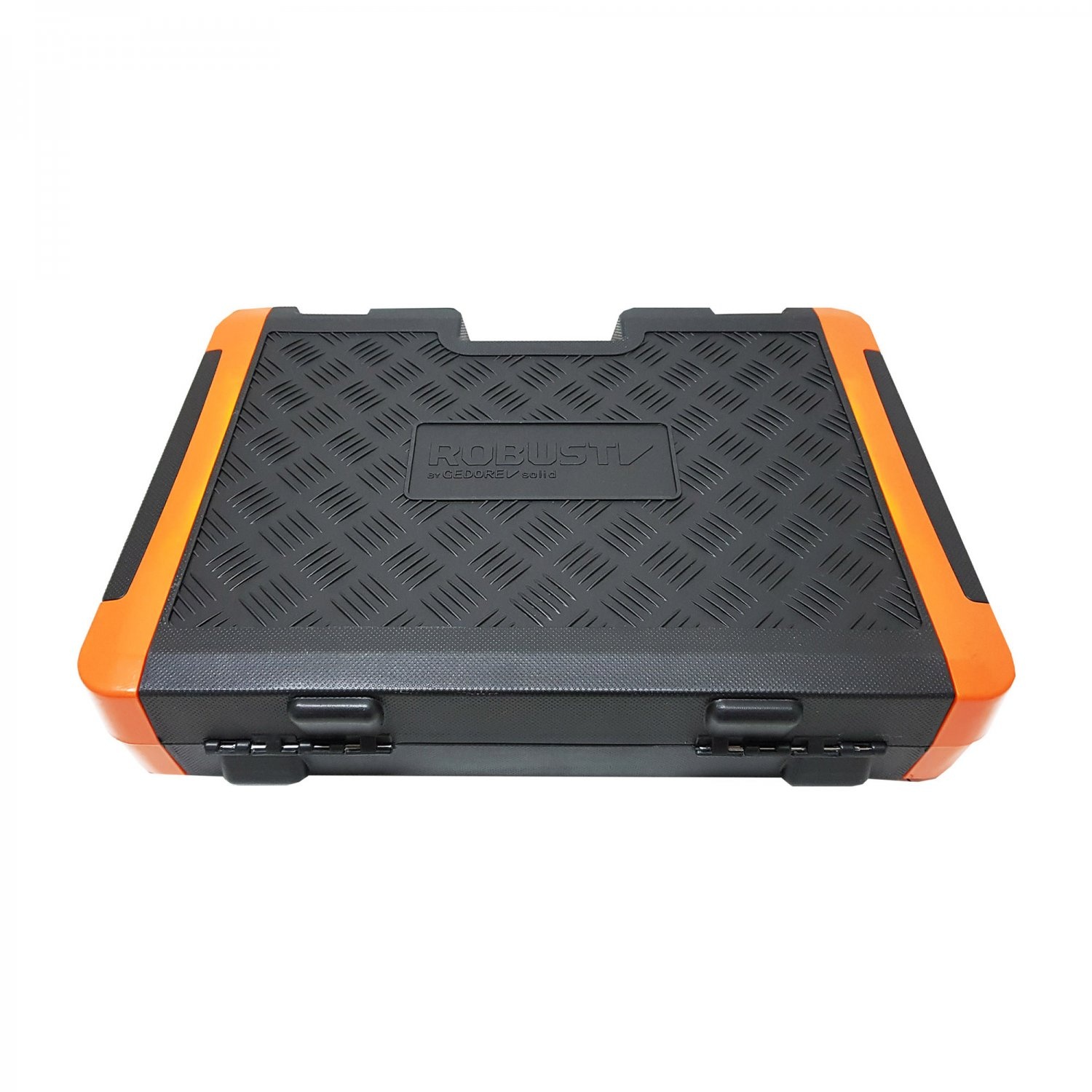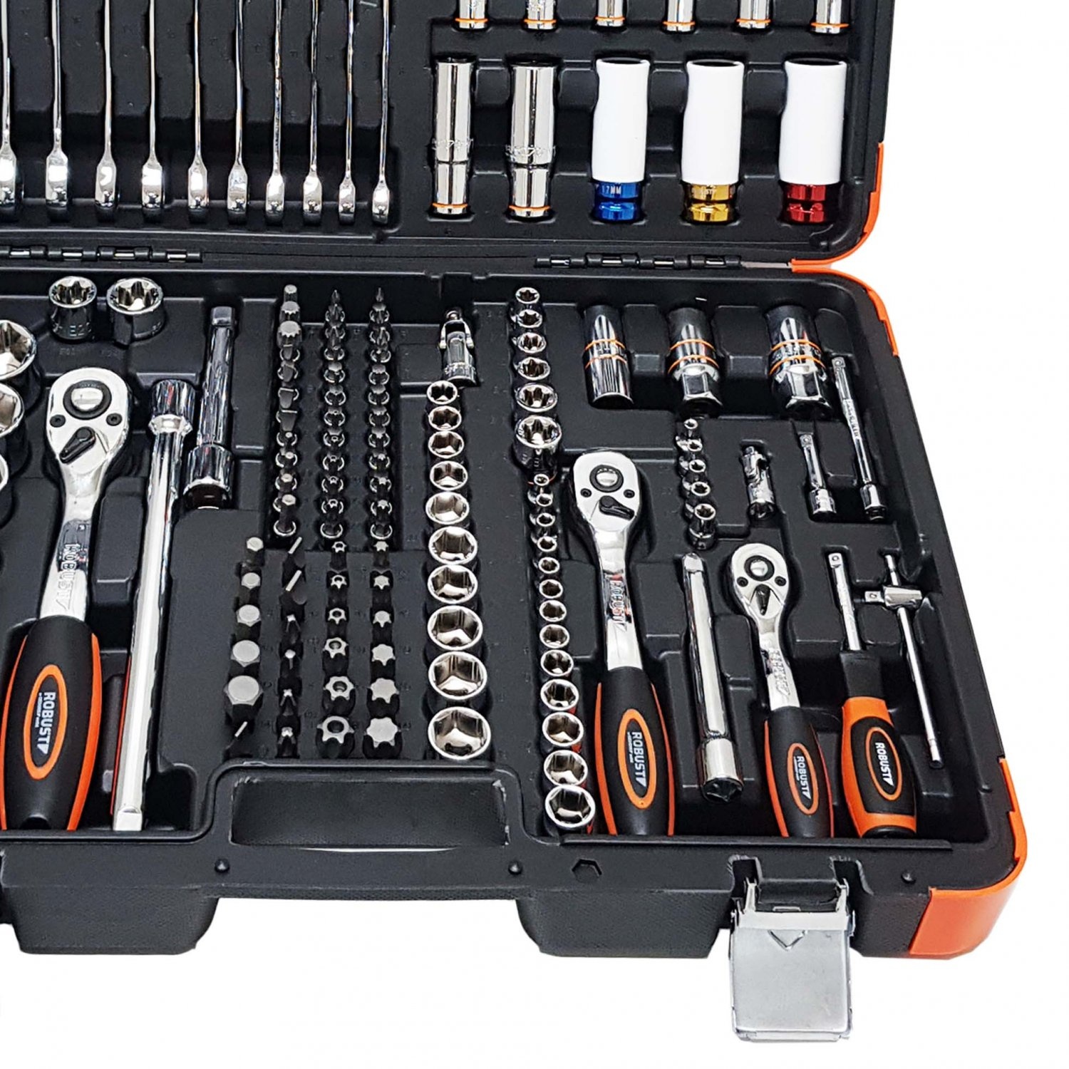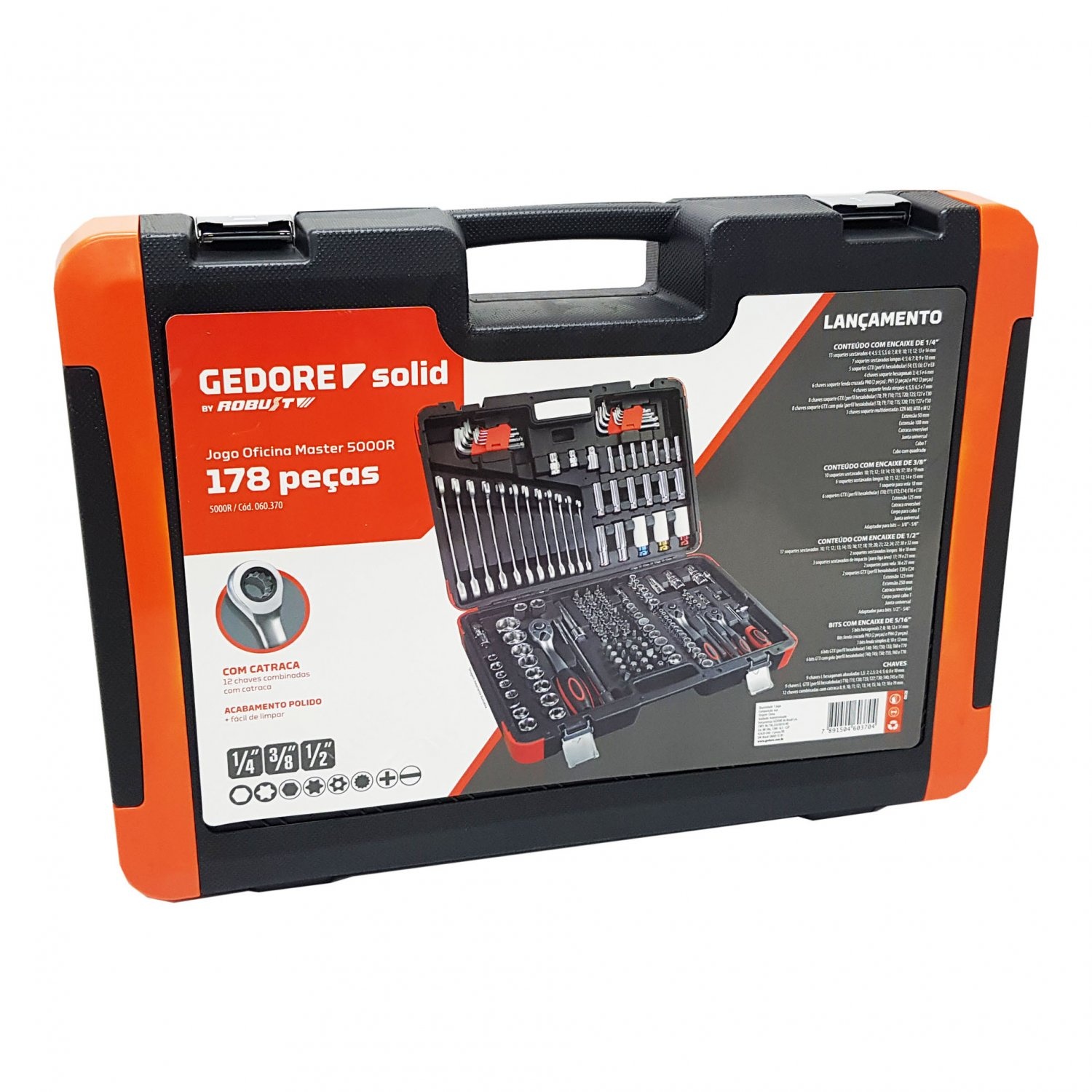 O Jogo oficina master 5000R possui amplo mix de chaves, soquetes e acessórios, nos diversos perfis essenciais para o dia-a-dia tornando-o uma verdadeira oficina móvel. Contém as três principais encaixes utilizados no segmento automotivo: 1/4", 3/8" e 1/2". As ferramentas são fabricadas em aço cromo vanádio (Cr-V), dando durabilidade e resistência e como o acabamento cromado espelhado assegura excelente aspecto visual e permite maior facilidade na hora da limpeza. Acompanha maleta organizadora com fecho em metal, projetada para facilitar o transporte, garantindo organização e visualização das ferramentas.