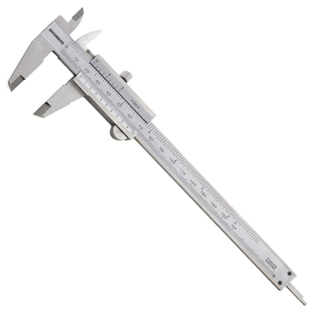 Paquímetro universal quadrimensional de 150mm é fabricado em aço inoxidável temperado, oferecendo durabilidade. Conta com parafuso de fixação da medida e cursor monobloco. Possui escala e cursor com acabamento cromado fosco, e deslize do cursor sobre guias ressaltadas, impedindo o desgaste da gravação.